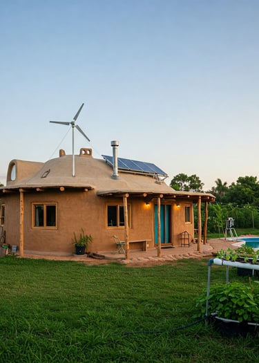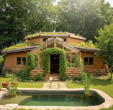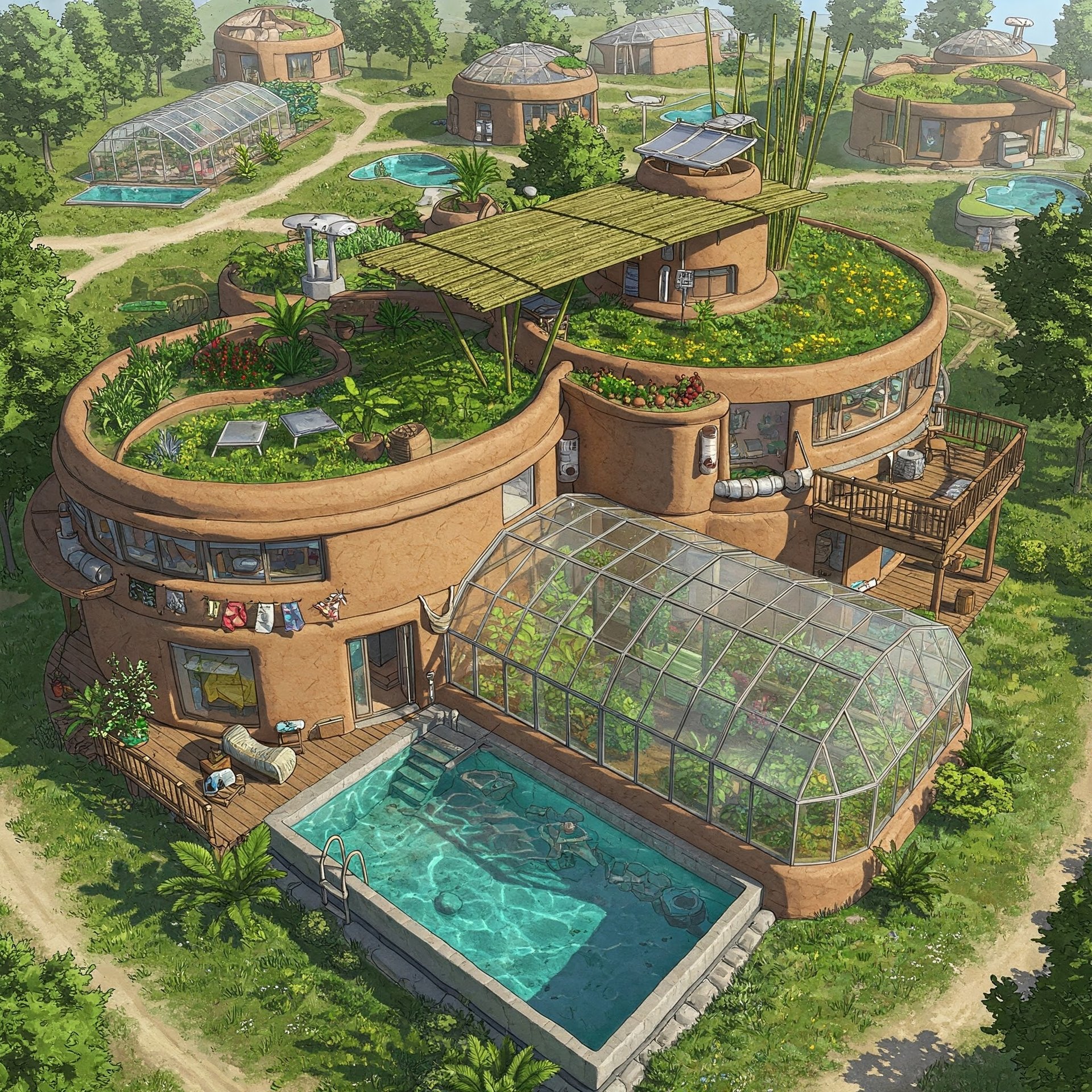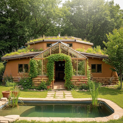 Part or the roof could covered with earth, and vegetation, which help keeping a nice comfy climate inside,