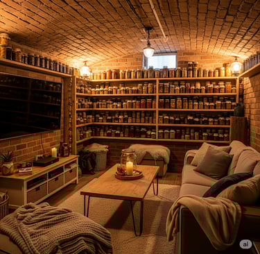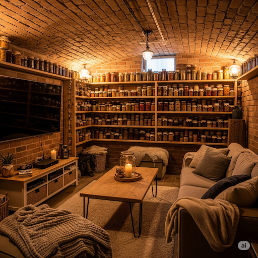 On the shelf you also see a ton of jars. sterilized , or lacto fermented jars are Another great way to keep the food you produced for years reducing the need for freezer and fridge.