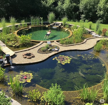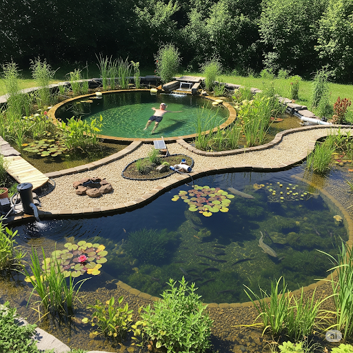 Close by theres the natural pool, there s actually multiple bassins, a main one where you swim, a large wet zone where water is filtred and a fish area…