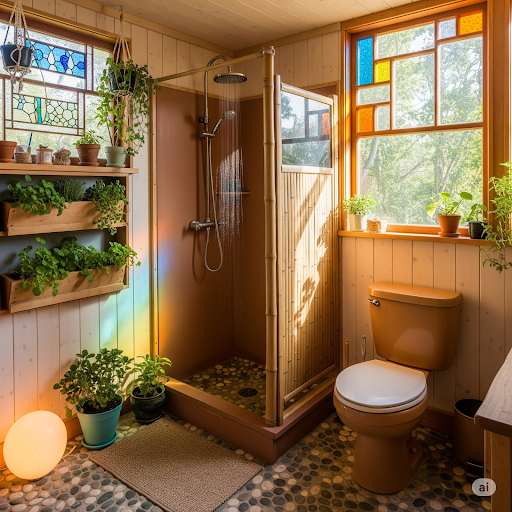 Ok back up, lets visit the bathroom, could be a compost toilet and misting shower, if low on water, or it could be a regular flushing toilet going inito a biodigestor and a regular presurized water set up…