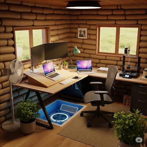 For an upgrated comfort a diy tiny ac systhem runs on hot days.