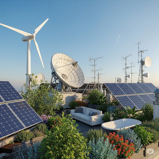 On the roof you also eventualy find some antenas for the internet, a wifi repetitor anterna, (to share / rent internet to your neighboors), why not a diy TV antena, eventually a VHF and long range radio antena as well, to be sure to always be somehow connected to the world…