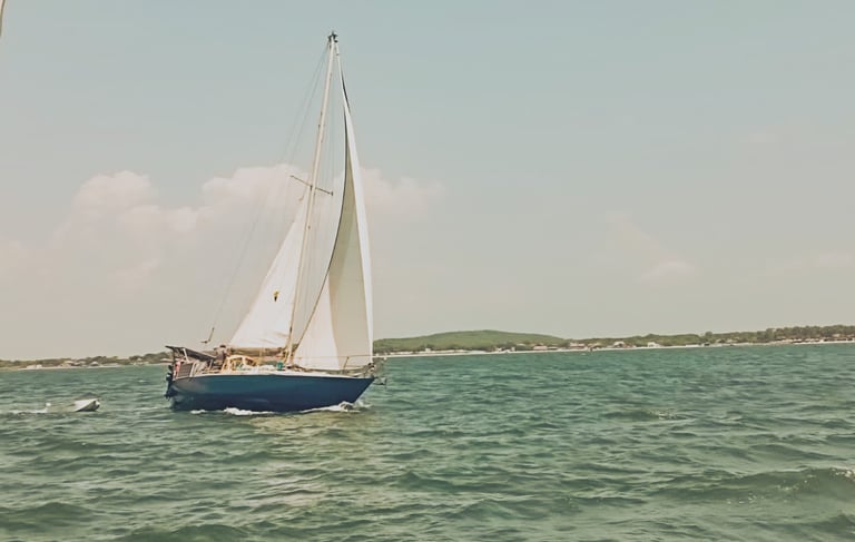 A off grid ready boat, heavily reinforced fiber glass sailboat.