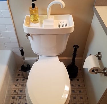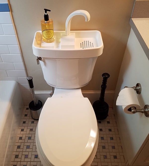If not any of that at the very least, have the piping system bring that water to your garden to feed your plants. Same for your kitchen sink water, which also has the advantage of being nutrient-rich with all those food scraps.
